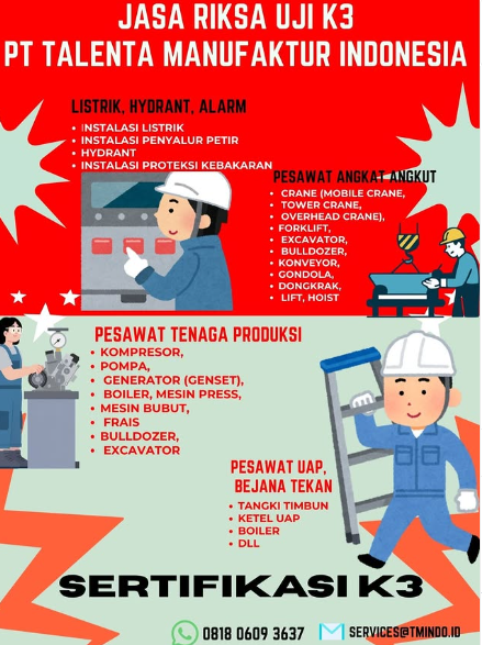 Beberapa kategori objek K3 yang wajib menjalani pemeriksaan berkala