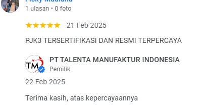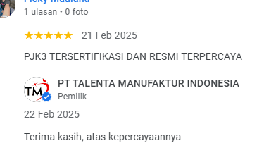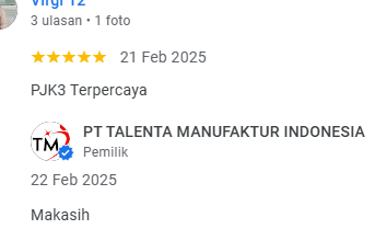 PT TALENTA MANUFAKTUR INDONESIA. PJK3 BIDANG RIKSA UJI TERPERCAYA - MELAYANI SELURUH INDONESIA